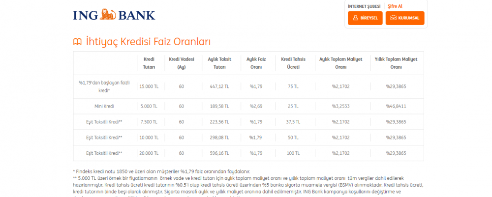 ihtiyac kredisi faiz oranlari 2020 60