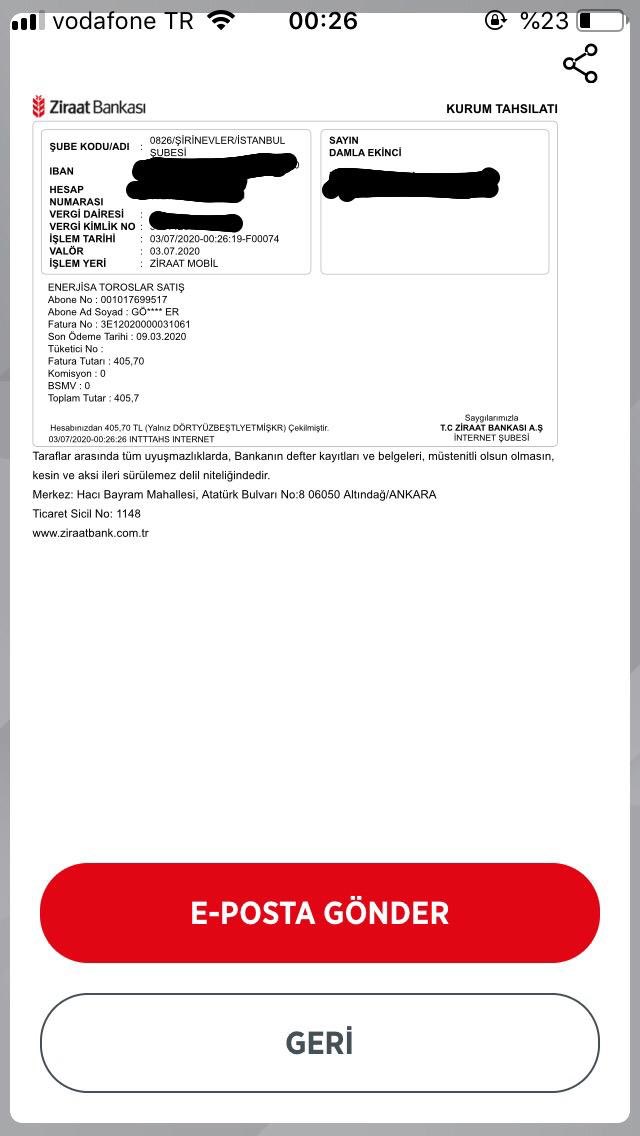 ziraat mobil fatura odeme elektrik su
