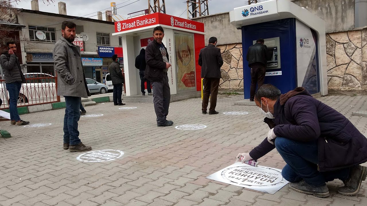 ercis te sosyal mesafeyi korumak icin zemin cikartmalari yapistirildi