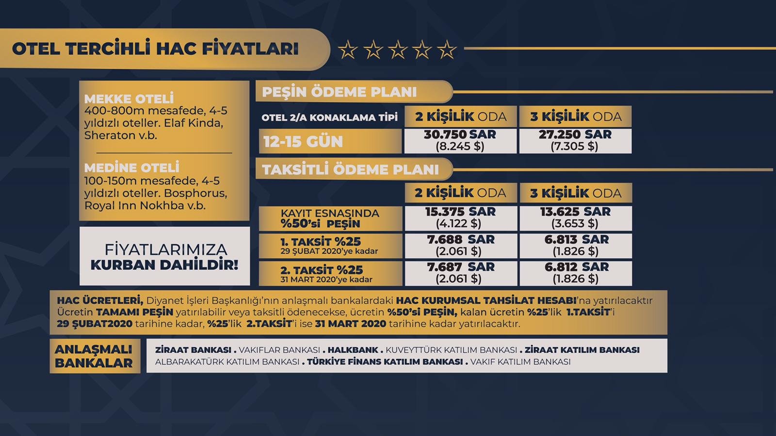 hac fiyatlari diyanet 2020 kisi basi ne