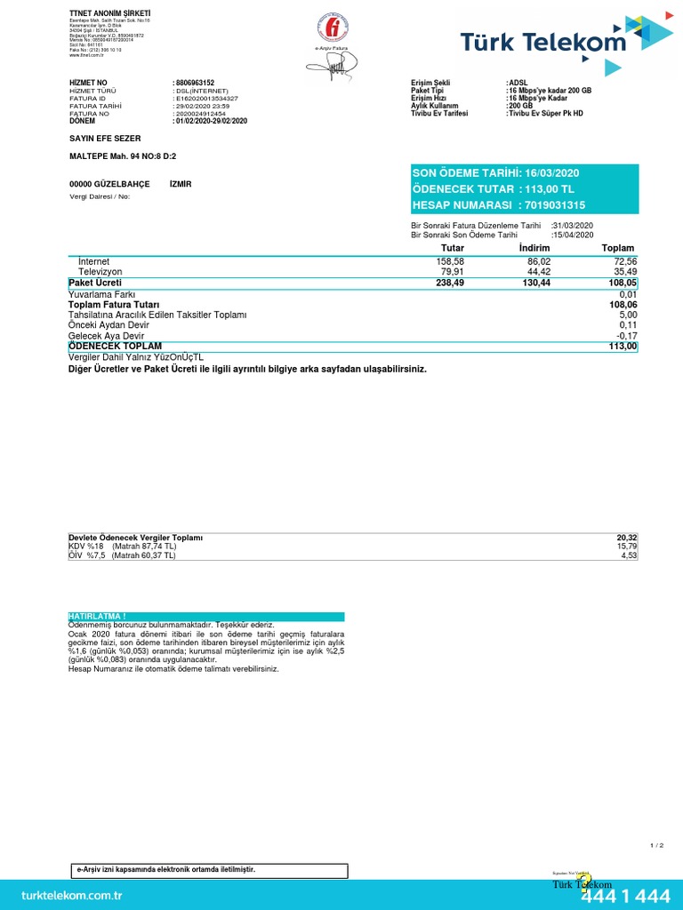 turk telekom internet ttnet fatura