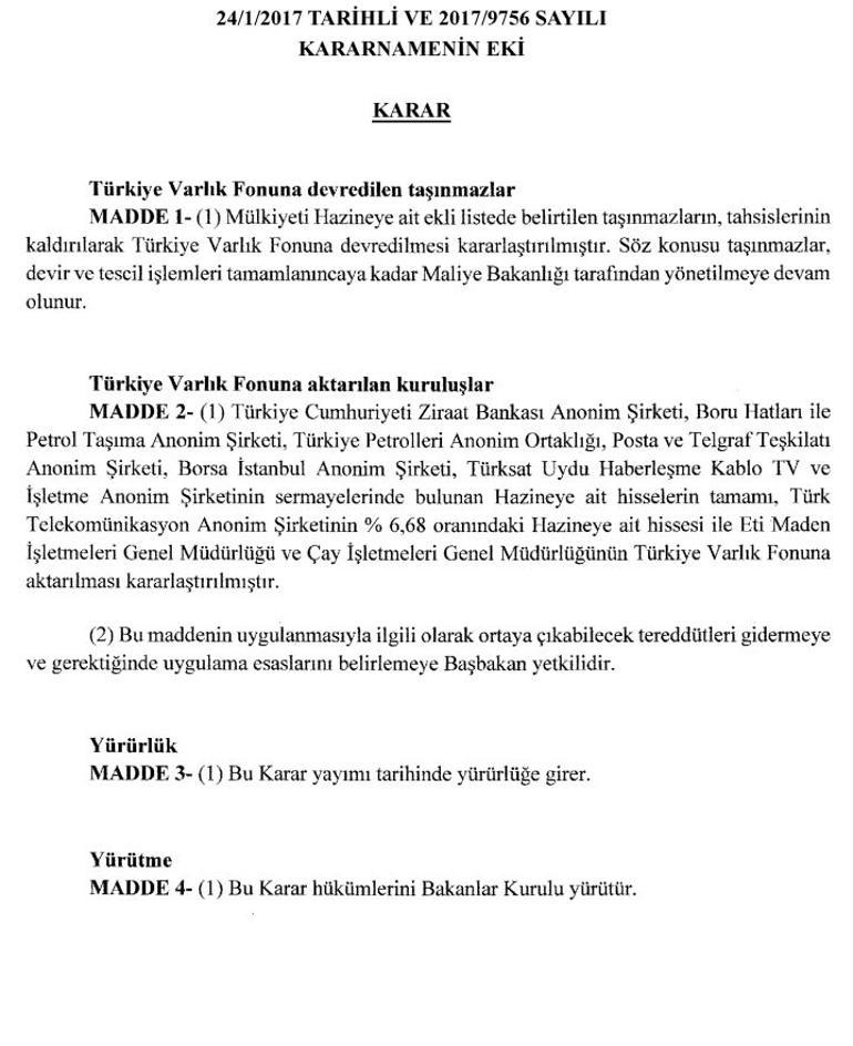ziraat bankasi turksat botas ptt bist varlik fonu na devredildi