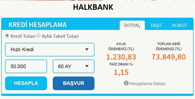 ziraat bankasi ihtiyac kredi faiz