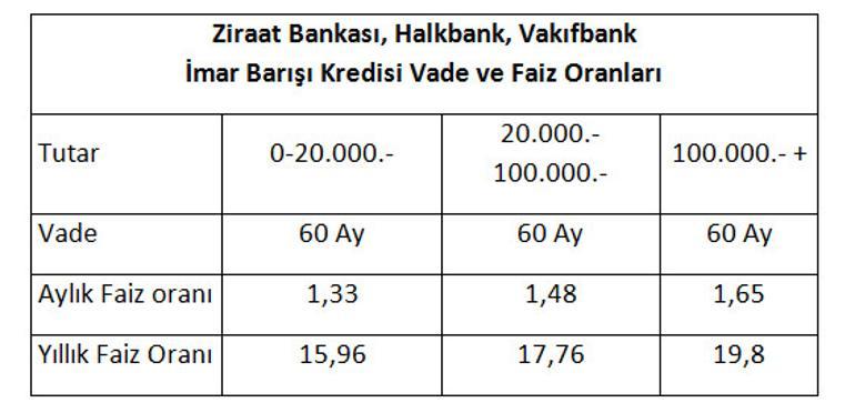 imar barisi icin dusuk faizli kredi