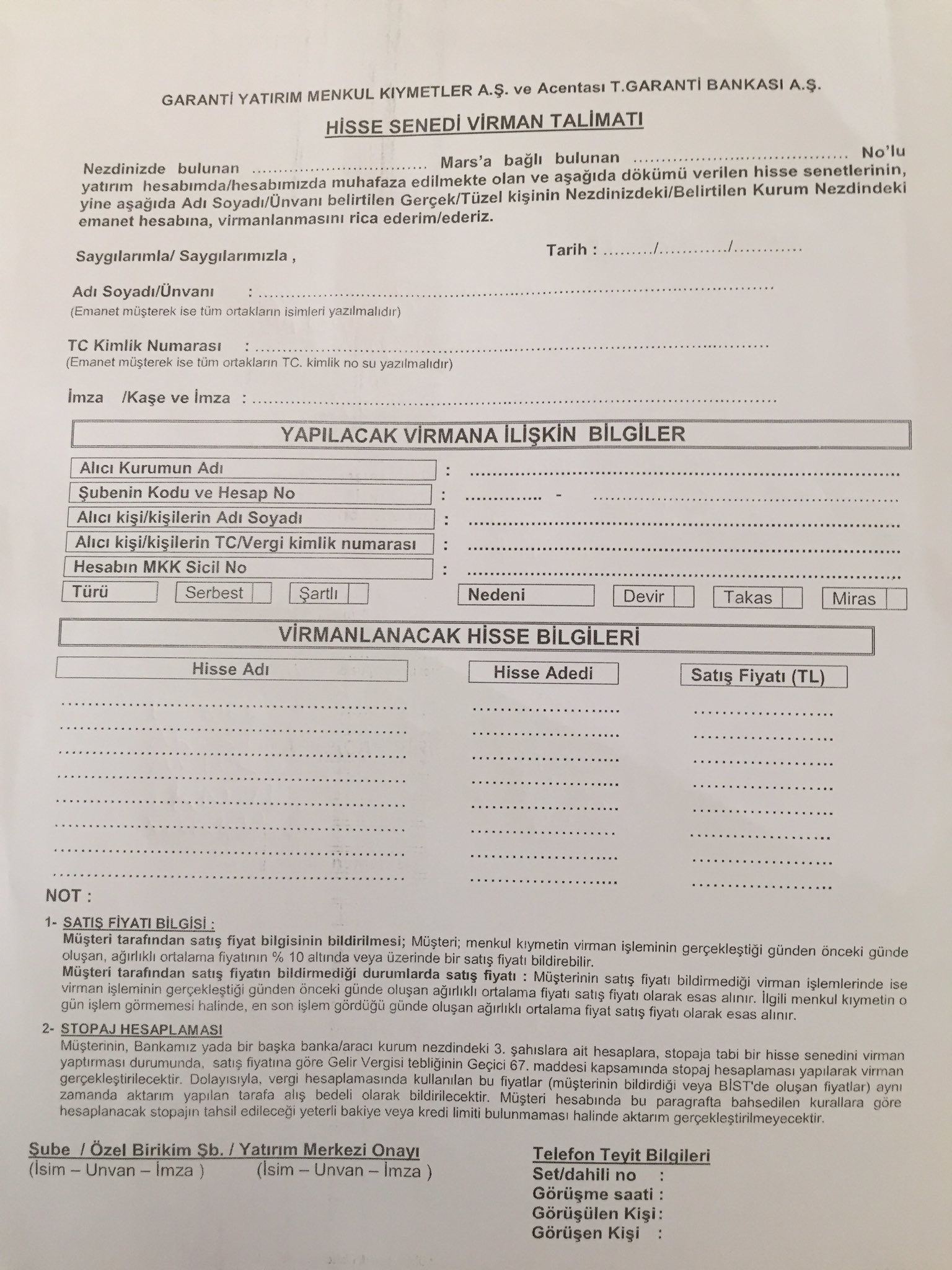garanti yatirim hisse virman